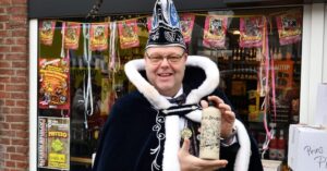 Een nieuwe traditie is geboren! Tijdens een feestelijke bijeenkomst ontving Prins Pieter het speciaal voor hem gemaakte prinsenlikeurtje, het ‘Pieterke’, uit handen van Thomas van Herpen van Gall & Gall.